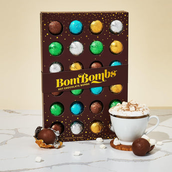 24 HOT COCOA BOMBS – Includes 5 flavors in BomBombs’ signature brown packaging.