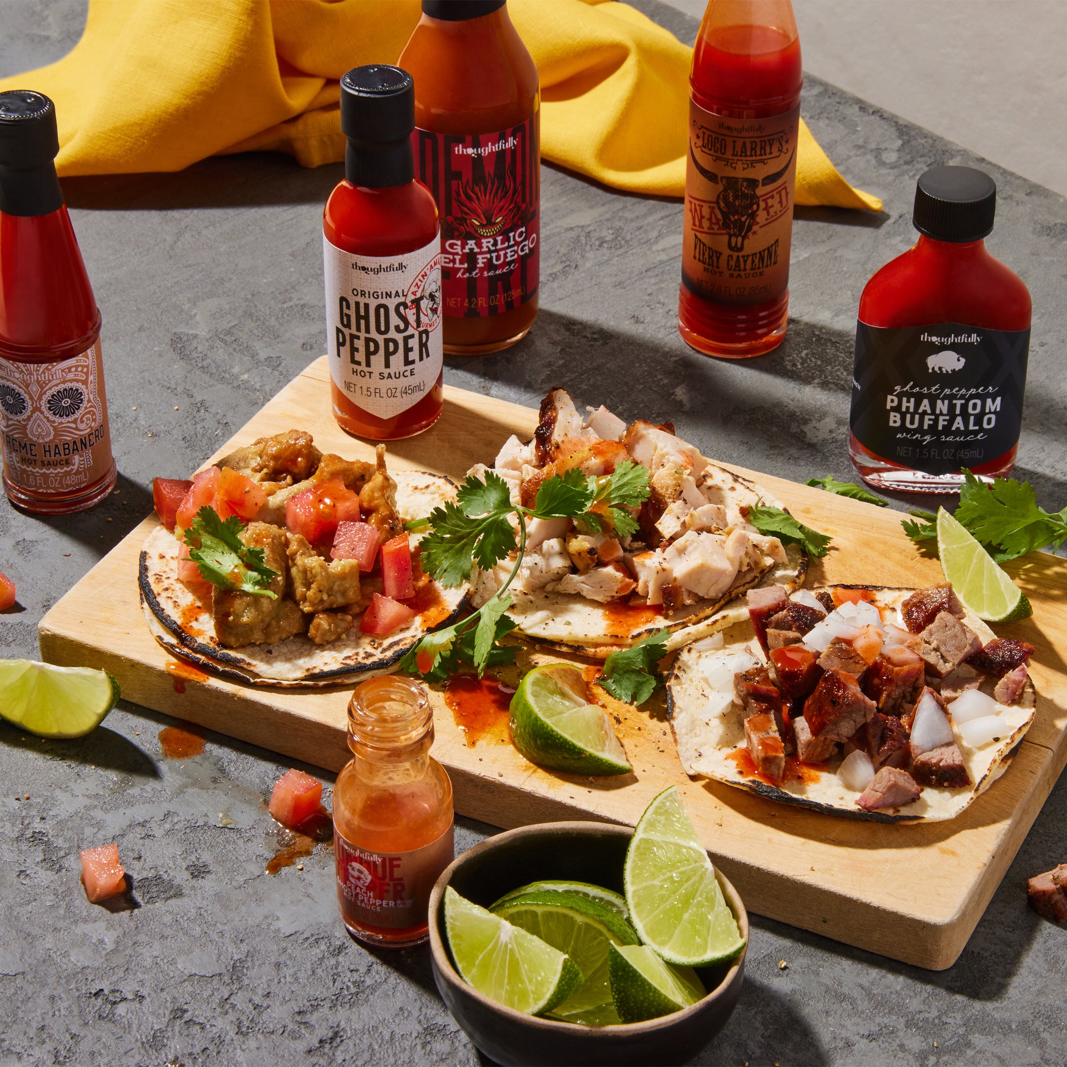 FLAVOR & HEAT COMBO – Experience bold, delicious flavor across the Scoville scale—featuring Apple Whiskey, Mango Habanero, Garlic del Fuego, and more.