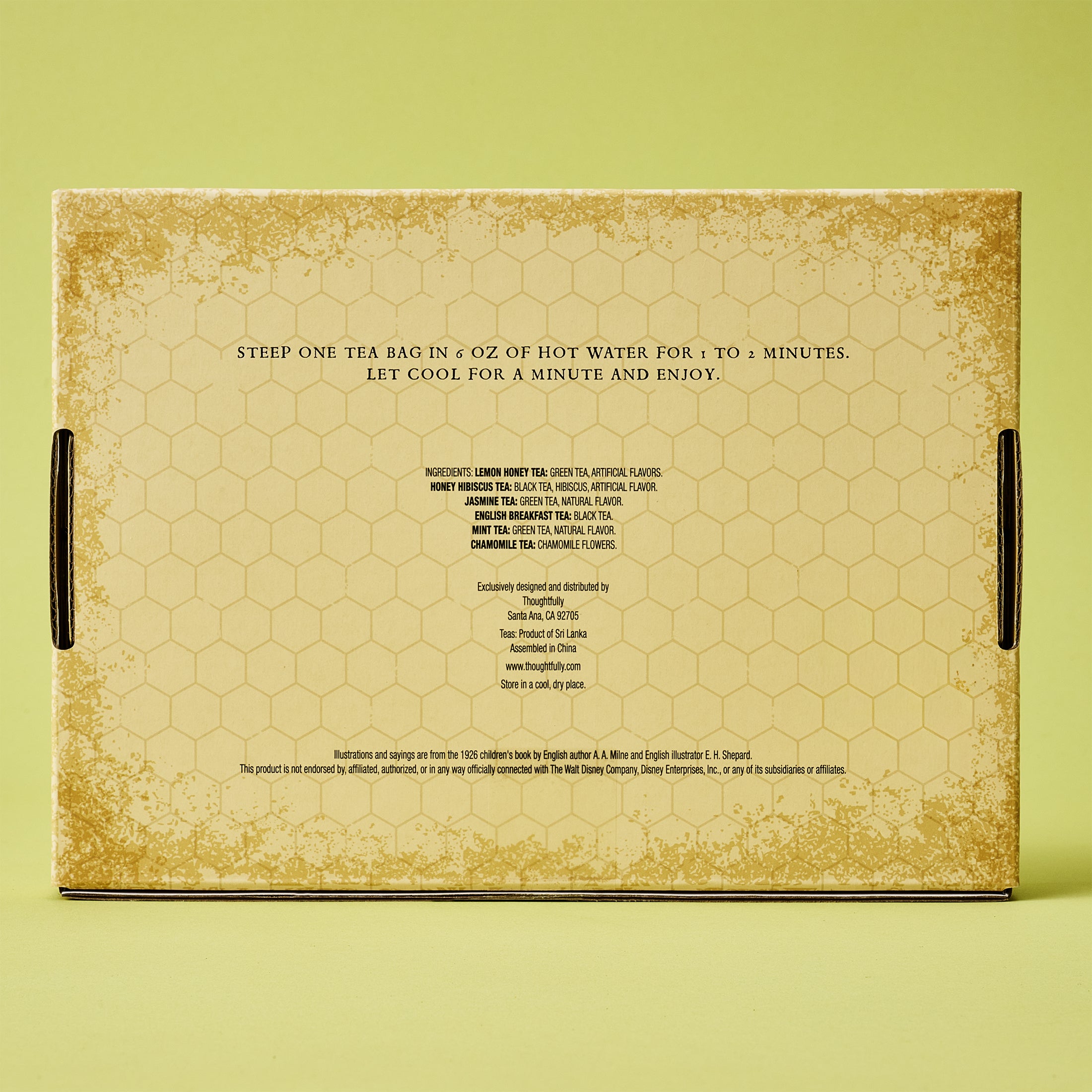 - 60 QUOTE-PRINTED TEA BAGS – Each individually wrapped tea bag features a Classic Winnie-the-Pooh quote printed on the front for a charming storybook touch.